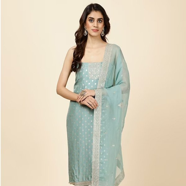 Sea green woven design unstitched dress material